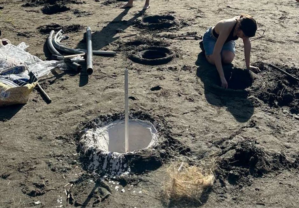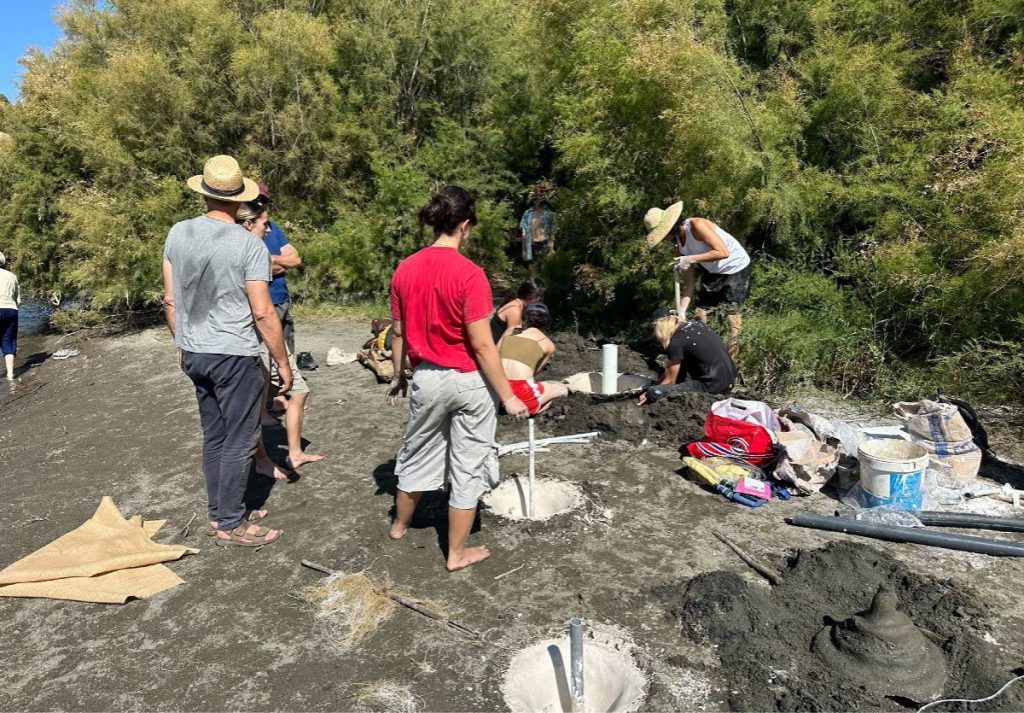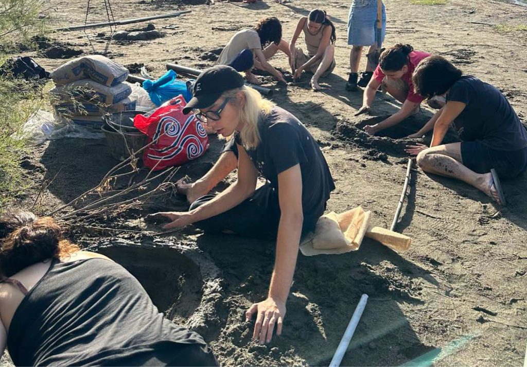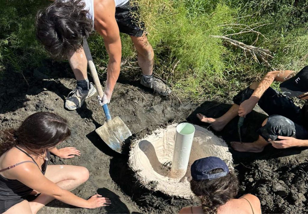 The project unfolded over four days and was produced in the Lecrín Valley (Spain) through the University of Granada’s alRaso residency program with 10 emerging artists. The prompt for "Tierra Trompetas" was a desire to “cast a sound” directly from the valley's terrain. We dug holes beside the Río Ízbor and cast them in situ in plaster. The resulting negative volumes were then sounded using rubber membranes, balloons and pipes. After the work was finished, the forms were reverberated into the valley in a one-hour action.